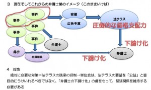 ①費用の取りはぐれという点を避けたいという点は理解できるとしても、弁護士が安易に法テラスに依存し過ぎ、法テラスに力を持たせすぎると、上記図のとおりの流れが出来上がってしまい、そのことは、調和ある自由競争原理の破壊をもたらします。